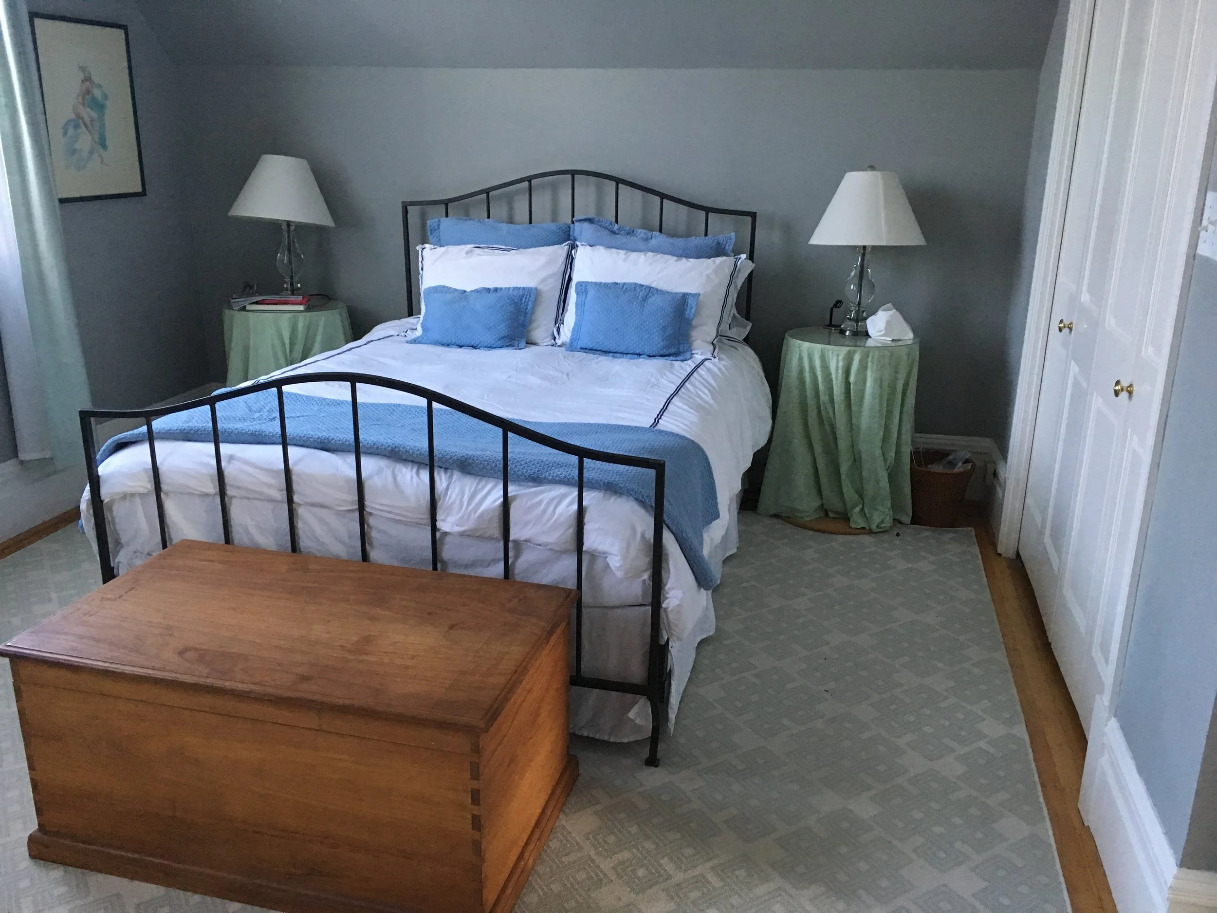 This is currently the master bedroom, but will become our guest room when the renovation is finished. The rug, chair, ottoman, and side table (with a new coat of paint) will be staying, the rest (which was all hand-me-down from various generous family members) will be leaving.