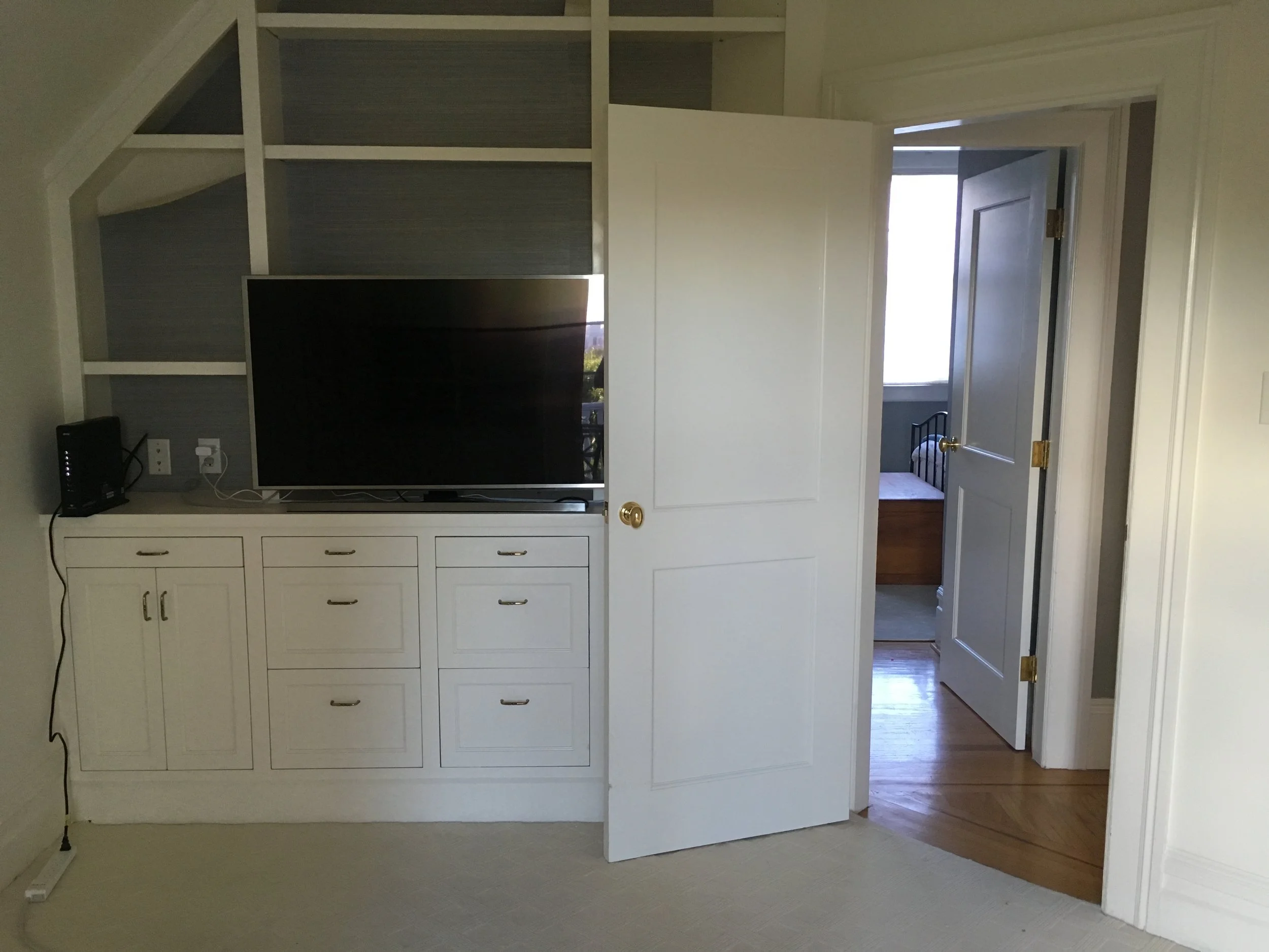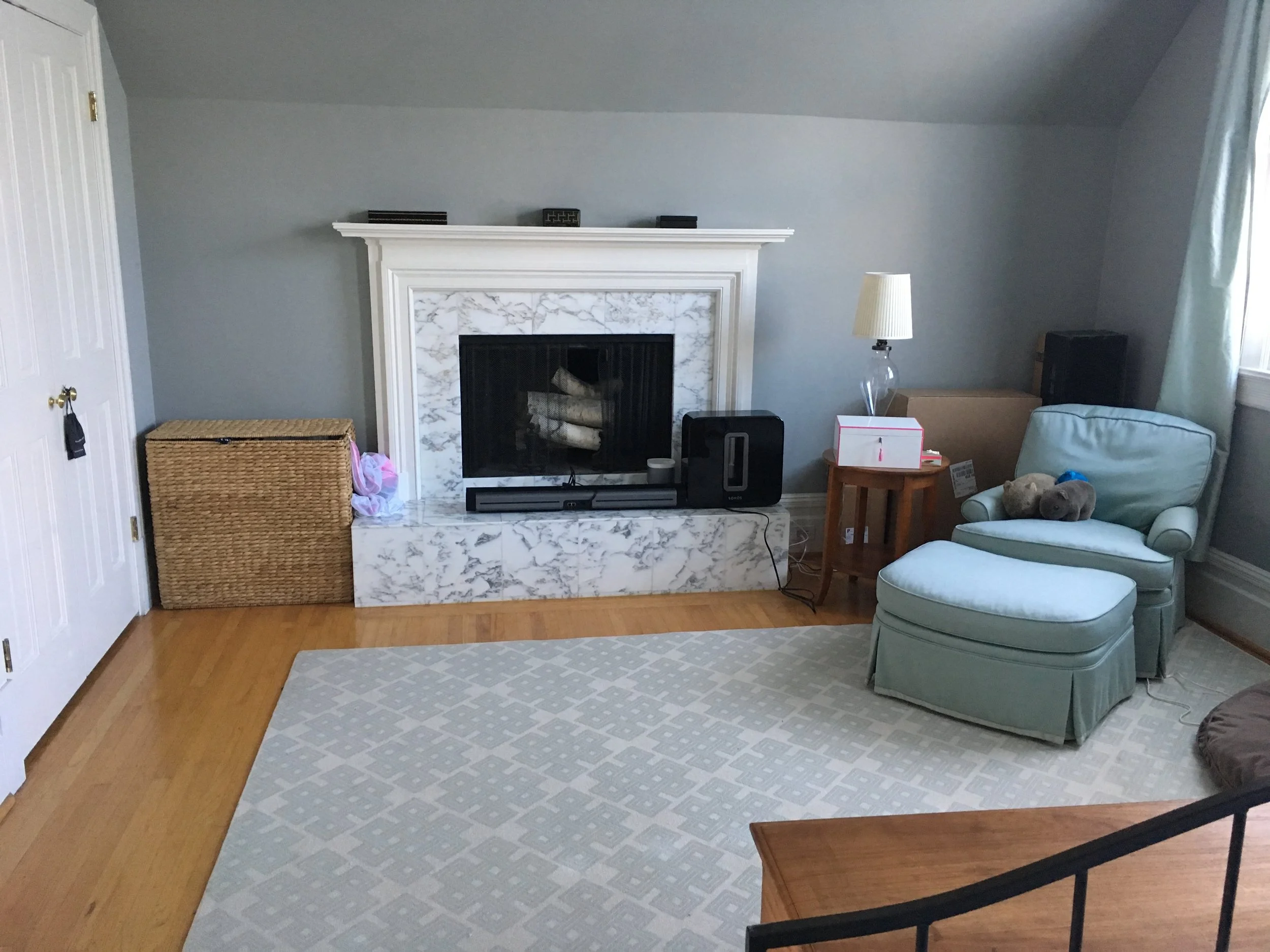 This was a little boy's room under the previous owners. My husband picked it because it's slightly larger and slightly darker, so better for a TV/gaming setup. Priorities!